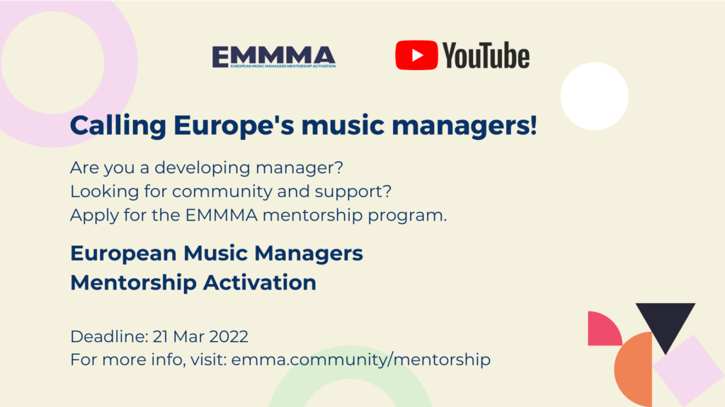 EMMMA is proudly presented by the European Music Managers Alliance, with funding partner YouTube Music, welcoming new mentors: